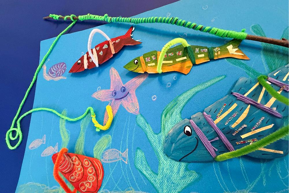 Tauche mit uns ein in die bunte Unterwasserwelt! In diesem kreativen Workshop wirst du zum Meeresforscher und Bastelprofi zugleich. Gemeinsam basteln wir ein Angelspiel, bei dem du selbst gestaltete Fische und andere Meeresbewohner angeln kannst.